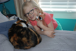She has been loving school so far, it is almost over. She has exceeded expectations in math and reading so far, which is great. Her favorite thing to do at school is to create art and check out a library book each week. She is making friends and is very softhearted. I love that she is kind and observant of other peoples feelings. She is full of energy and wants to be a faster runner, so she keeps practicing. She has been drawing pictures and I have been sewing little beds and accessories for her dolls.
