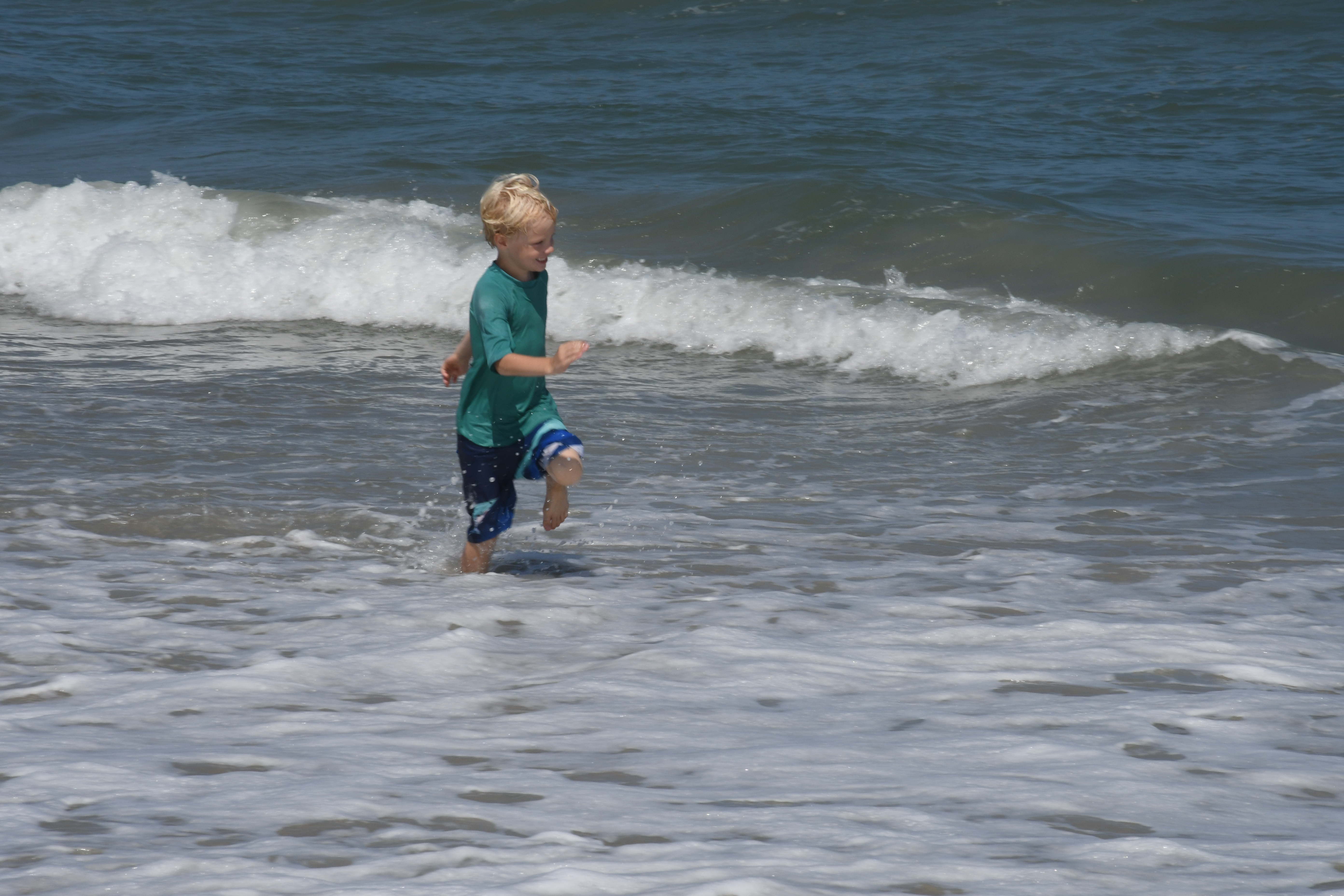 We played on both sides of the island, these pictures are on the ocean side. We loved both sides of the island. The sound side was shallow and calm(we were there at low tide) the kids liked how far out they could go and not worry about waves. They also loved the Atlantic side because of how powerful the waves were. The sanderlings(shore bird) in the picture were running down the sand as the wave went out and eating something. I started digging my hands into the sand to see what it was and to my astonishment I found an array of life. There were a lot of sand crabs/sand moles and tiny bi valve clams. The kids and I started digging them up then watching as they quickly burrowed back into the sand. The kids also collected a lot of shells every time we visited the ocean. It was an amazing day!